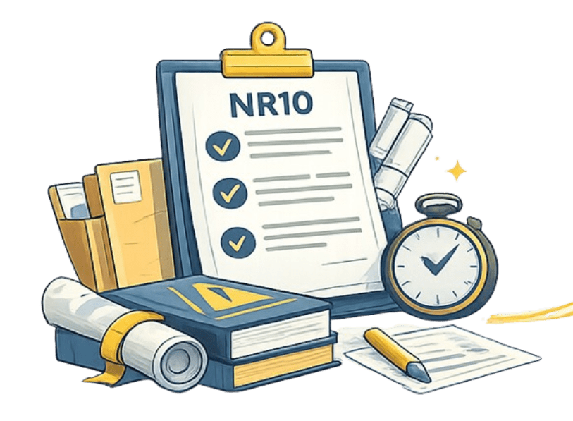 Ao concluir o Curso NR10 Online, você recebe um certificado digital com validade nacional. Ele comprova que você está capacitado para atuar em conformidade com a Norma Regulamentadora 10 e atende às exigências legais em auditorias de segurança do trabalho.